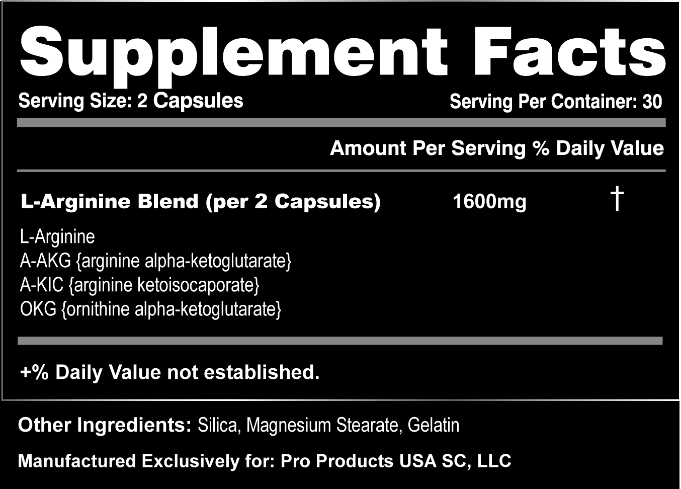- L-Arginine (1600mg)